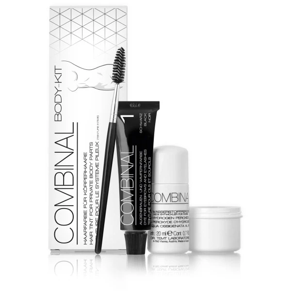 grâce au kit teinture Combinal vous avez tous le nécessaire pour teindre vos poils de moustache, du torse et du pubis sans aucun problème.